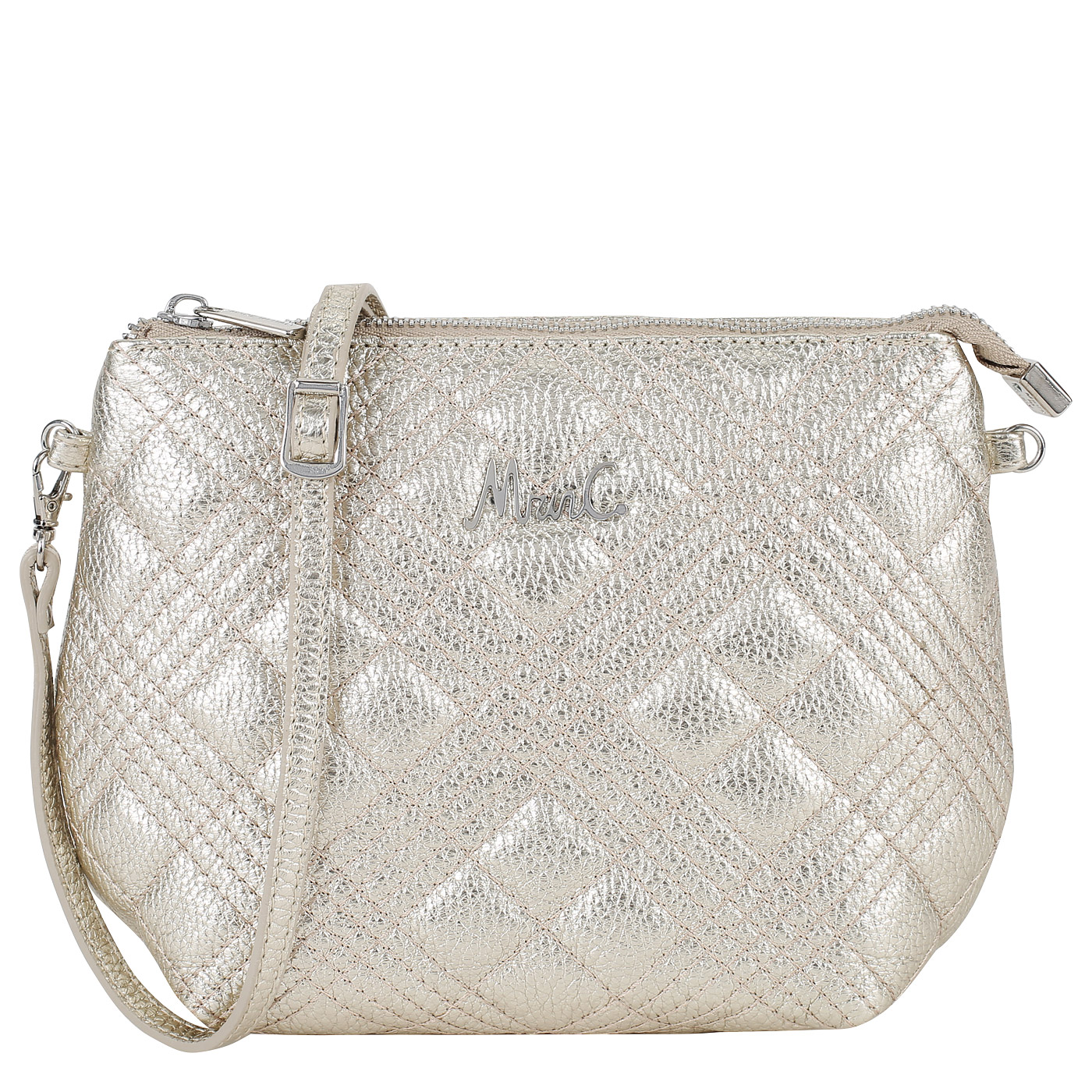 Сумка через плечо Marina Creazioni TRP193 X943 6726_lam.platino_pc - 2000558656702 золотой натуральная кожа 23 x 17 x 7,5 Цена 14864 руб. купить в интернет-магазине PanChemodan.ru в Челябинске