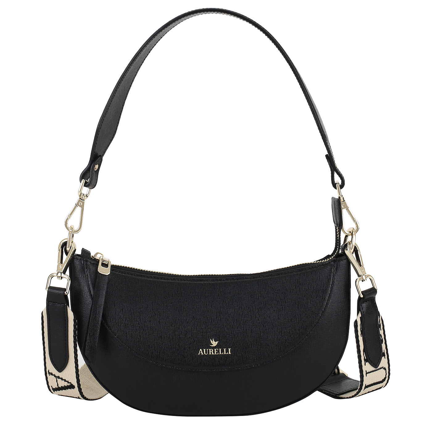 Кожаная сумка Aurelli Bella 23S0155-18G-nero_pc - 2000558620987 черный натуральная кожа 27 x 12 x 5,5 Цена 9090 руб. купить в интернет-магазине PanChemodan.ru в Москве